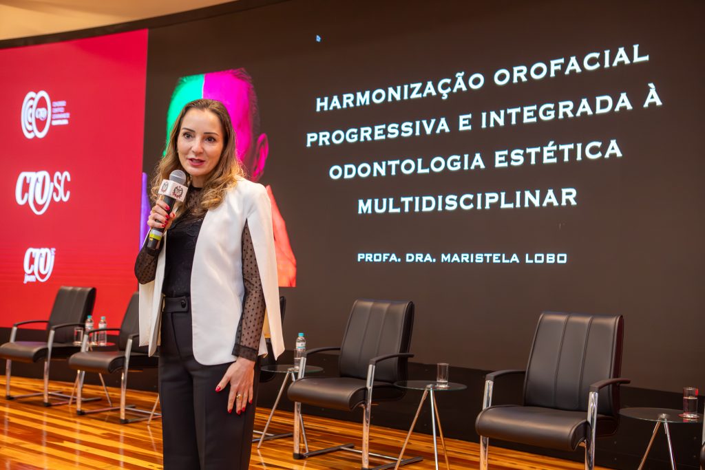 No período da tarde, a Profa. Dra. Maristela Lobo, doutora e mestre pela FOP-Unicamp, especialista em Periodontia e coordenadora de cursos de pós-graduação no Centro Universitário SENAC-SP e na Faculdade São Leopoldo Mandic, apresentou a conferência “Harmonização Orofacial Progressiva e Integrada à Odontologia Estética Multidisciplinar”.