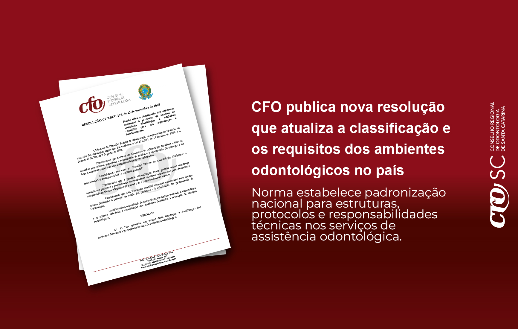 O Conselho Federal de Odontologia (CFO) publicou, em 12 de novembro de 2025, a Resolução CFO-SEC-277, que define uma nova classificação para os ambientes destinados à prestação de serviços de assistência odontológica em todo o país e atualiza os requisitos mínimos de organização, funcionamento e segurança sanitária.