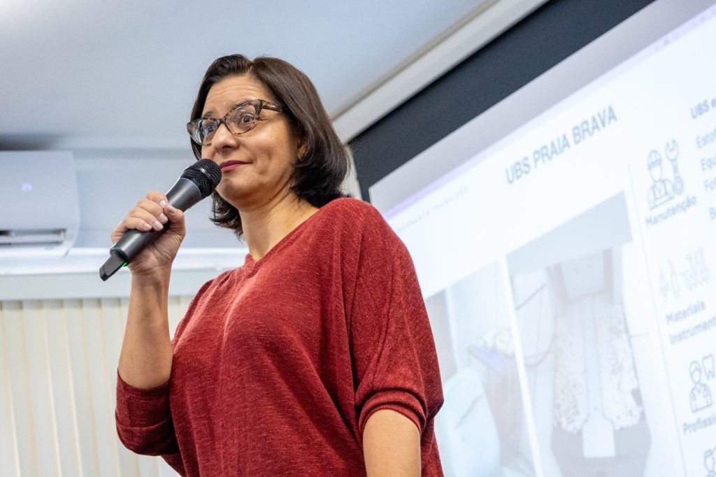 Na sequência, a Dra. Ilse Bork, supervisora de Saúde Bucal da Secretaria de Saúde do Município de Itajaí, abordou o tema “Criação de Grupos Condutores de Saúde Bucal”, com ênfase na organização do trabalho em rede e no enfrentamento das demandas crescentes da população. “A necessidade por tratamentos odontológicos cresce a olhos vistos. Nós precisamos estar organizados para responder melhor à população. Ninguém vai a lugar nenhum sozinho. A troca de experiências e o trabalho conjunto são fundamentais para encontrarmos soluções”, referenciou.