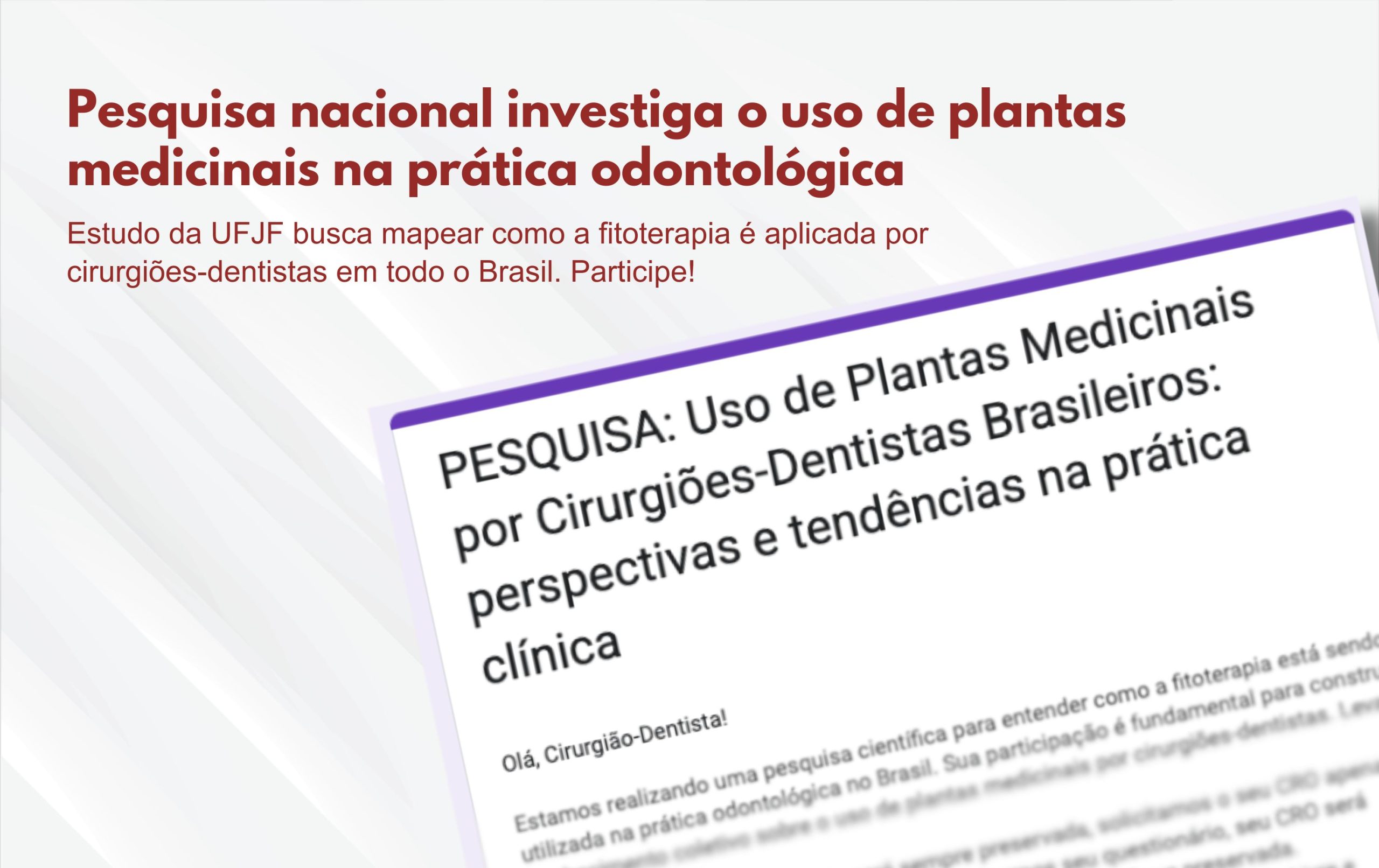 Cirurgiões-dentistas de todo o país estão sendo convidados a participar da pesquisa científica “Uso de Plantas Medicinais por Cirurgiões-Dentistas Brasileiros: perspectivas e tendências na prática clínica”, que tem como objetivo compreender como a fitoterapia vem sendo utilizada na Odontologia. O estudo é coordenado pela Profa. Dra. Ana Carolina Morais Apolônio, cirurgiã-dentista e professora associada da Universidade Federal de Juiz de Fora (UFJF), e busca mapear o conhecimento, a percepção e a aplicação de fitoterápicos na rotina dos profissionais.